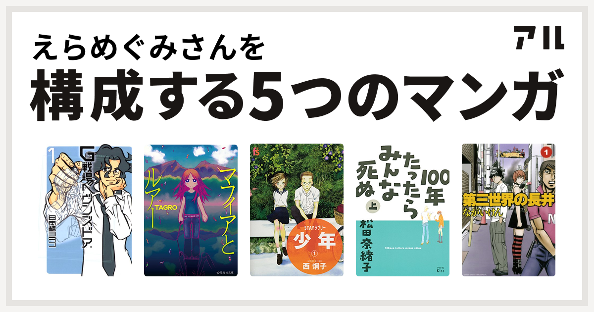 えらめぐみさんを構成するマンガはg戦場ヘヴンズドア マフィアとルアー Stayラブリー 少年 100年たったらみんな死ぬ 第三世界の長井 私を構成する5つのマンガ アル